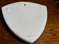 This Crown Lynn Slip Vase 110 has a seahorse engraved on it. It is a beautiful and rare piece, an earlier product from Crown Lynn and it's highly likely that it was designed by David Jenkin. The faint mark on the back dates it from the mid-1950s or the early 1960s. It is a quality item, reflecting the fact that by the time it was made, they were much more skilled in design and reproduction.