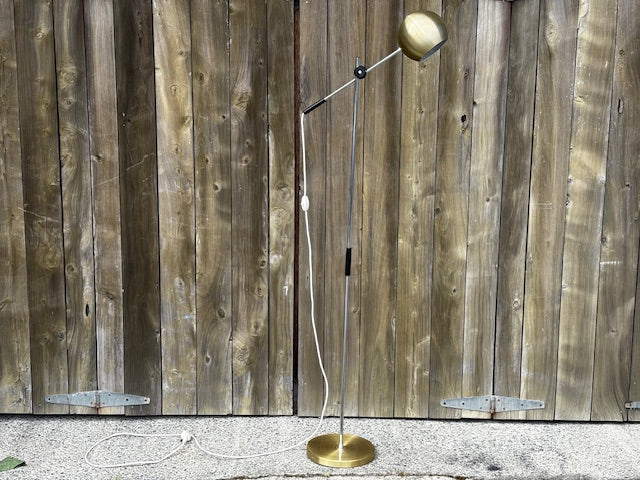 The original metallic gold colour is authentic and creates an elegant sophisticated industrial floor lamp look and feel. The height and angle of the lamp is adjustable.