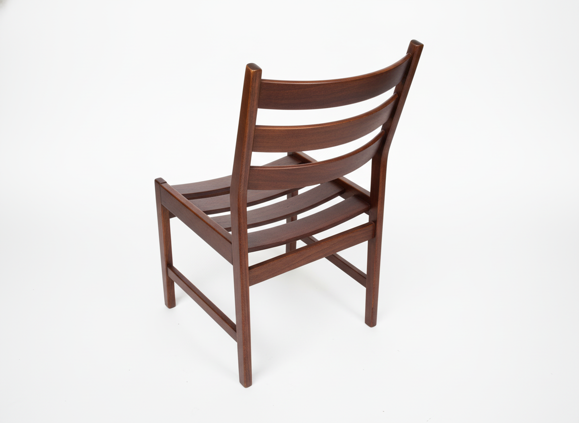 Larsens designs often heavily reference works by other Danish designers but were adapted slightly to suit local preferences and manufacturing technology. This was a trend embraced by most of the large commercial furniture makers in New Zealand at the time. The most recognisable version of another Dane's work would be Larsen's 'Da Nina' dining chair which closely resemble the work of Erik Buch.