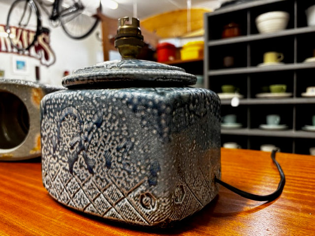 This vintage lamp (we have two of these lamps, each with it’s own unique markings/glazing), is a special unique piece.