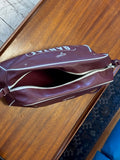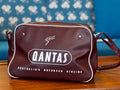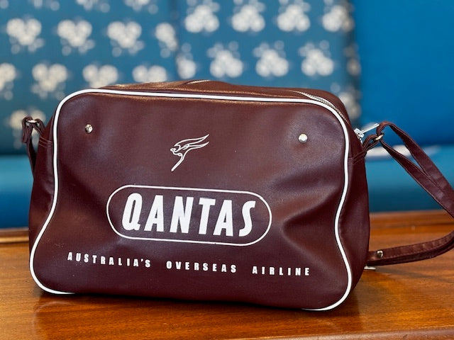 This is an original maroon Qantas shoulder bag, circa 1950’s. The zip functions as new and opens up to a spacious inside.