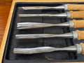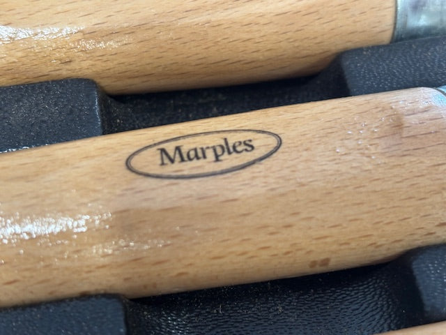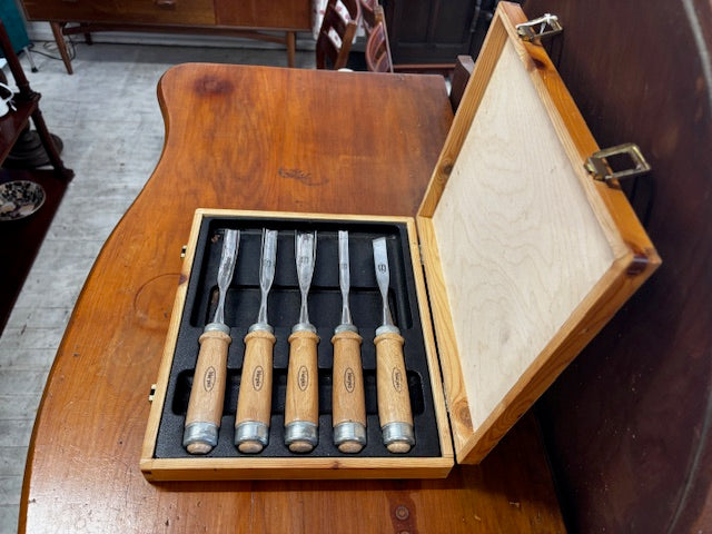 Set of 5 Chisels in good condition, in original box. The Marples brand made in Sheffield, England has a legacy of high quality craftsmanship.