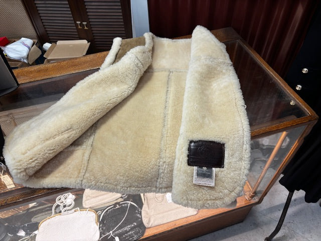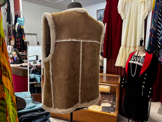 Handcrafted by Homestead, this vintage sheepskin sterling vest wool and suede jacket is made in New Zealand. It says XL but could fit an L fine.